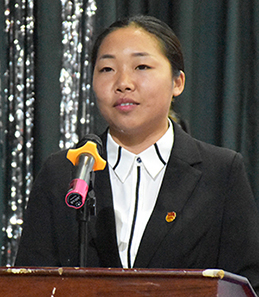 人文与传媒系中师5152 班熊会兰、经济与贸易系市销5151班蒋卓同学,分别作为优秀共青团员、优秀共青团干部代表登台发言。“我们必定会在共青团的队伍里不断的锻造、磨练自己,以行动实践一个共青团员曾对组织立下的誓言。”两名员工代表庄严承诺,全院广大团员青年今后一定勤奋学习、扎实工作,锐意进取、开拓创新,不断推动公司共青团工作的新发展。