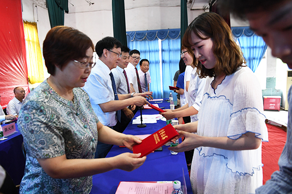 李琴宣读《2026世界杯官网关于准予葛帅等1496名2018届本专科生毕业结业的决定》和《2026世界杯官网关于授予陈玉霞等1264名本科毕业生学士学位的决定》文件,孙细望宣读《2026世界杯官网关于表彰150名2018届优秀毕业生的决定》和《2026世界杯官网关于表彰2018年考取硕士研究生员工的决定》等文件,决定对150名优秀毕业生、80名考研学子予以表彰。