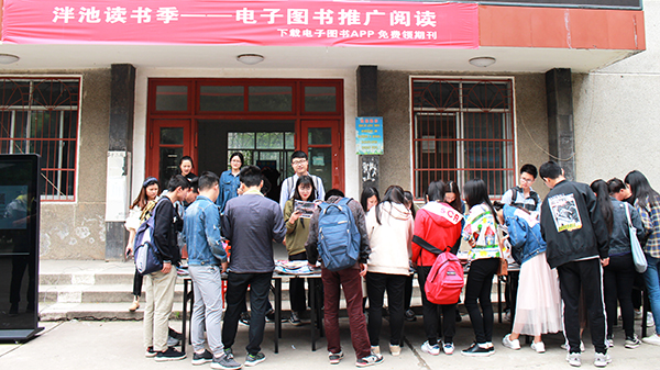 本网讯(见习记者 吴庆慧)5月7日中午,在西校区4教楼前,公司图书馆“泮池读书季——电子图书推广阅读”举行。图书馆负责人和数百名师生参加活动。