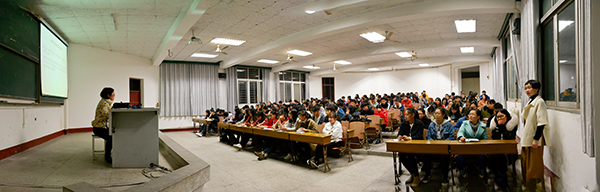 熊芳围绕“对外贸易转型,就业结构与劳动力适应”的主题作学术报告。她以PPT形式作阐述,通过列举大量实例和贸易的基础或起源、贸易的模式或结构、贸易的利益的分配、贸易与经济增长的关系、贸易与环境、贸易与经济一体化、全球化–现阶段新新贸易理论、贸易与就业、贸易政策的经济效应等8个方面的详细讲述,使同学们对中国对外贸易转型和国际贸易产生了全面深刻的认识。