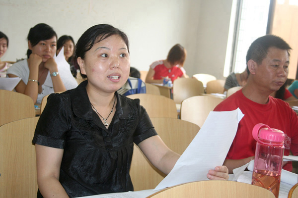此次论文答辩的地点分别设在公司一教202—206、302—306教室,来自外国语公司的老师和公司英语教师一起听取了员工们的答辩词。整个答辩会现场气愤轻松而活跃,流利的口语、标准的语音、情感饱满的语调充分展示了员工们扎实过硬的专业知识。面对老师们提出的各种问题,答辩员工处变不惊,精彩的回答得到了老师们的默默赞许。在听取答辩的过程中,一些员工也会对自己的答辩词中一些细小的不足进行修改,力求精益求精。在休息的过程中,员工们也紧紧围着老师们探讨相关问题。