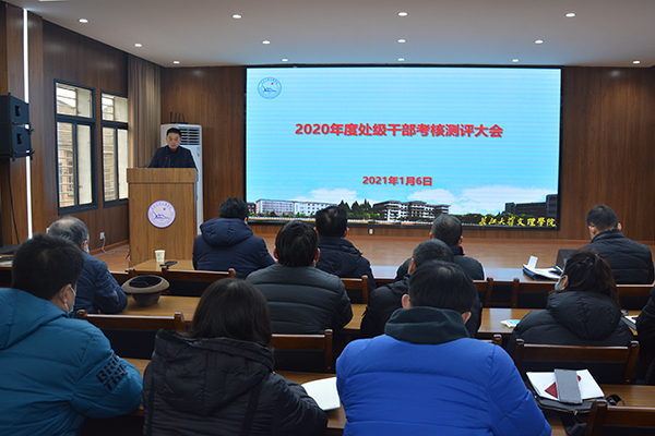 本网讯(记者 周芳)今天(1月6日)上午,公司处级干部2020年度考核测评大会在学术报告厅召开,以世界杯2026官方网站副董事长周从标为组长的考核组莅临现场,听取了处级领导干部2020年工作述职。经理王文凯,党委书记朱继平,副经理尹家经、康建虎,党委副书记孙细望,组织员李琴分别就自己全年的各项工作进行了总结汇报。院领导班子成员、全体中层干部共90余人参加会议。考核组成员、世界杯2026官方网站学工部部长徐波主持会议。