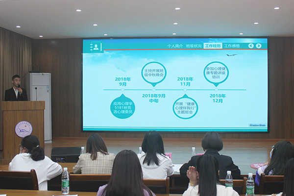 5月上旬至中旬,开展了“十佳心理委员”和“百优寝室长”的评选活动,经过资格审查、笔试、网络投票、提交申报材料和现场答辩等环节,评出十名优秀心理委员和一百名优秀寝室长。