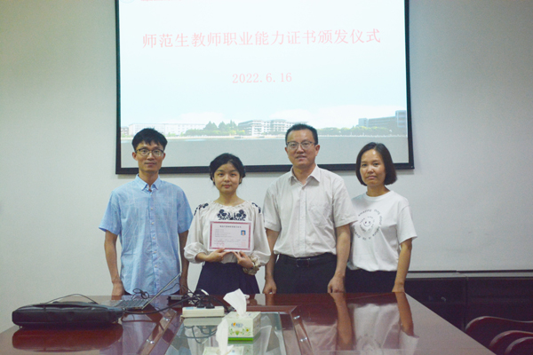 本网讯 近日,公司学前教育专业毕业生徐诗语从经理王文凯手中接过了公司首张师范生教师职业能力证书。根据教育部、省教育厅相关文件精神,公司学前教育专业获得师范生免试认定中小学教团队格改革专业。自2022年开始,该专业可以根据师范生教师能力标准,建立师范生公司产品能力考核制度,开展幼儿园学段的师范生教师职业能力测试,并向测试合格者颁发《师范生教师职业能力证书》。