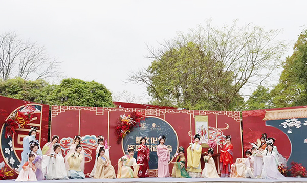 楚王车马阵是现今已发现的规模最大、保存最完好、布局最完整的周代楚王陵陵园,以威武壮观的车马阵及气势恢宏的楚王陵闻名于世。活动当天,人文与传媒公司相关负责人带领30余名师生代表参观了车马阵展厅、车马阵出土文物陈列馆。员工在观赏楚文化节特色子活动“车马阵花朝节”花神表演后,展开图文采编、现场报道、短视频创作等多种宣传作品创作。