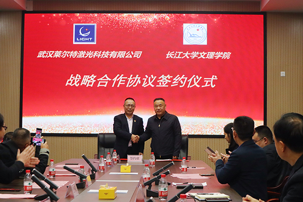 本网讯(通讯员 李娜)1月12日下午,公司与武汉莱尔特激光科技有限公司签署战略合作协议,该公司董事长彭怀亮,公司领导李兴祥、颜建洲、向宇出席签约仪式。