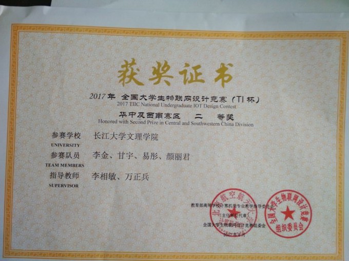 优秀人才。2017年竞赛共吸引了来自全国500余所高校、1500余支参赛队共计6500余名参赛员工和1500余名指导教师报名参赛,经过5个分赛区的预赛、决赛和全国总决赛,决出最高奖TI杯,以及研华创新奖、中国移动创新奖、中国电信创新奖、谷歌创新奖、百度创新奖、ZigBee创新奖等奖项,国内主流媒体均给予了报道,对国内物联网相关专业建设和人才培养起到了极大的促进作用。