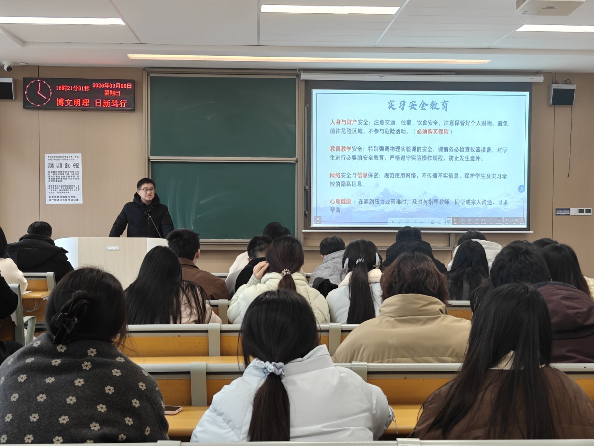 会上,党总支书记吴海良首先作动员讲话。他指出,实习不是走过场,是真刀真枪的历练,是同学们师范路上最真实、最有意义的一次成长,更是检验自己、锻炼自己的最好机会。他重点强调了实习期间的安全工作,要求大家守住安全底线,把自己护好;坚守师者本分,把形象树好;珍惜实习机会,把本领练好。