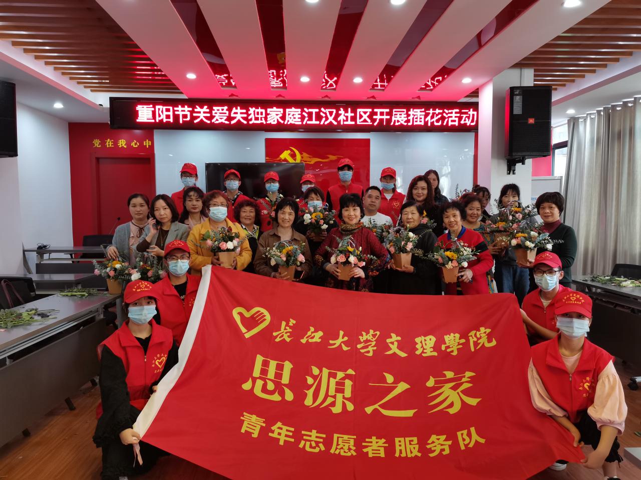 本网讯(员工记者 黄懿萱)10月23日下午,在重阳节来临之际,为了让失独老人感受到温暖与关怀,我系“思源之家”志愿者服务队的10名志愿者跟随沙市区中山街道江汉社区的工作人员一同开展了重阳节关爱失独家庭插花活动。