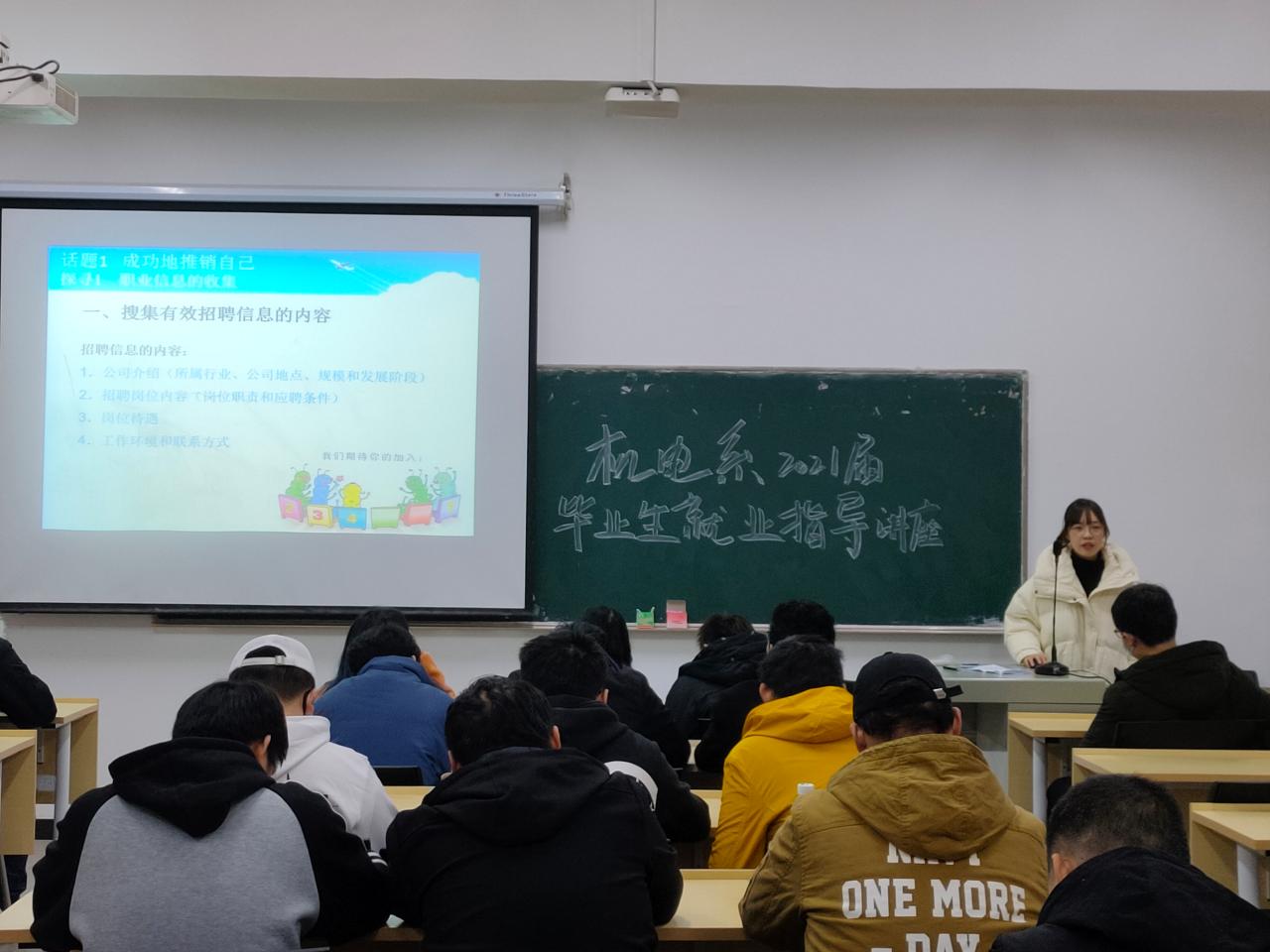 本网讯(员工记者 曲孝佳)11月25日下午,在西校区三教204教室,我系开展以“就业准备进行时”为专题的2021届毕业生就业指导讲座。讲座由辅导员陈质晶主持,2021届在校毕业生参加。