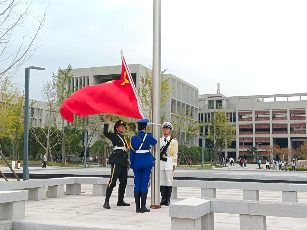 清晨,公司师生列队齐整,七点整,国旗护卫队着统一制服,英姿飒爽,迈齐步护卫国旗走向升旗台。在庄严国歌声中,国旗飘扬升起,公司全体师生肃立致敬,齐唱国歌,表对祖国的热爱与敬意。