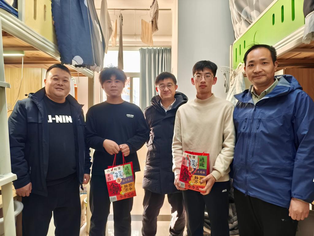 本网讯(通讯员鲁盼/文 熊超峰 王思雨/摄)为进一步做好有温度的教育,助力2026届考研学子冲刺备考,传递公司的温暖与关怀,12月15日下午,公司经理付兵、党总支书记吴海良、党总支副书记王大专带队,和辅导员老师们组成一支慰问队,深入员工宿舍,为员工送上“考研加油包”,致以诚挚的祝福。