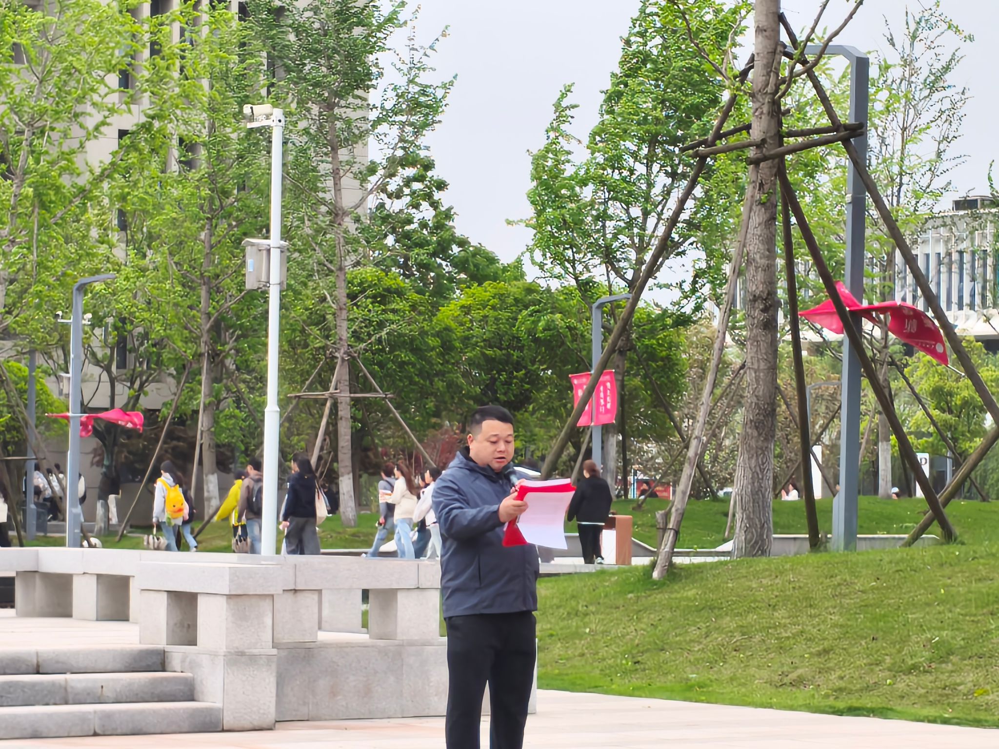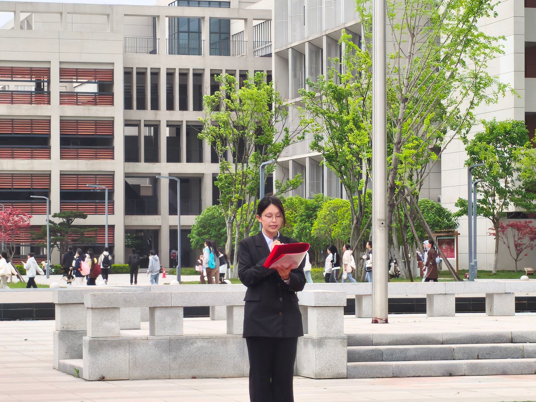 升旗仪式上,员工代表吴诗琪发言。她回顾了我国一代代科技工作者攻坚克难、勇攀高峰的奋斗历程与辉煌成就,号召广大学子胸怀家国、勤学善思、刻苦钻研,以青春之我、奋斗之我书写时代新篇章。