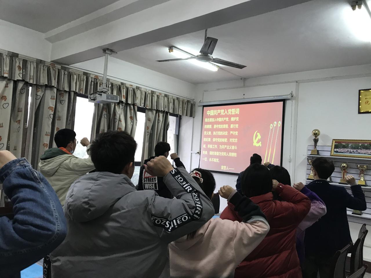 会议第六项,全体党员在刘文婷同志的带领下重温入党誓词。