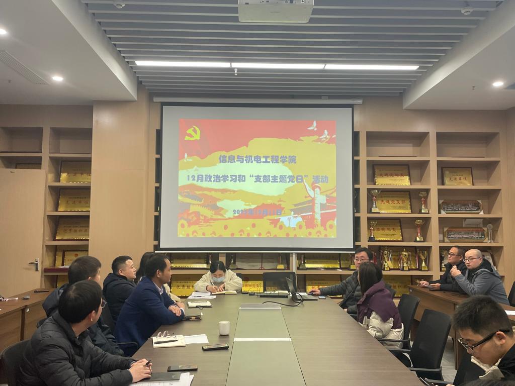 本网讯(通讯员 王妍柳)12月11日中午,公司教工党支部在信息公司会议室开展12月份政治学习和“支部主题党日”活动。会议由院教工党支部书记呙明辉主持,支部全体教职工参加。
