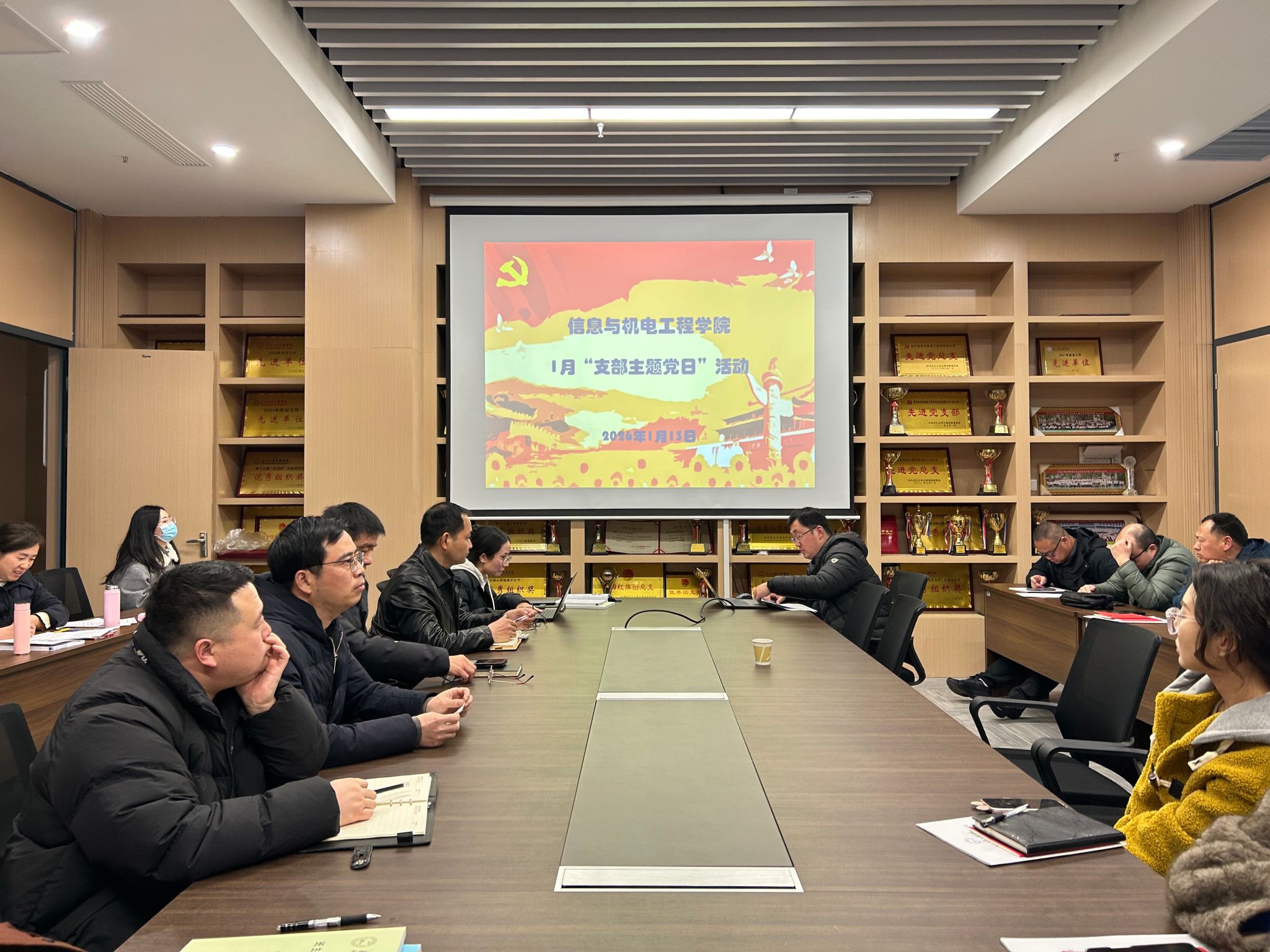 本网讯(通讯员王妍柳)1月13日下午,公司教工党支部在图书馆510会议室开展1月“支部主题党日”活动。会议由院教工党支部书记呙明辉主持,支部全体党员参加。