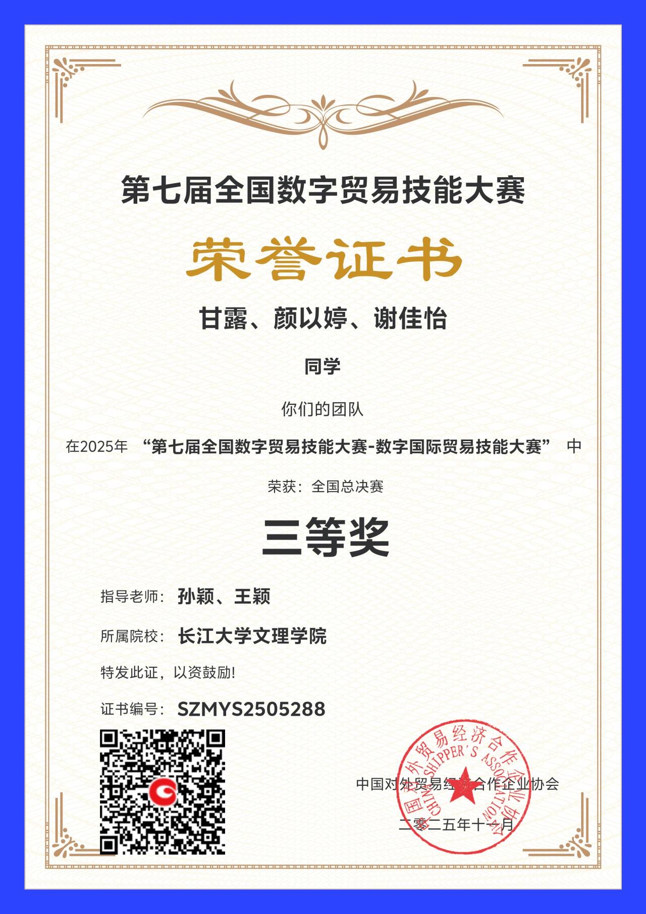 2025年第七届全国数字贸易技能大赛-数字国际贸易技能大赛全国总决赛三等奖