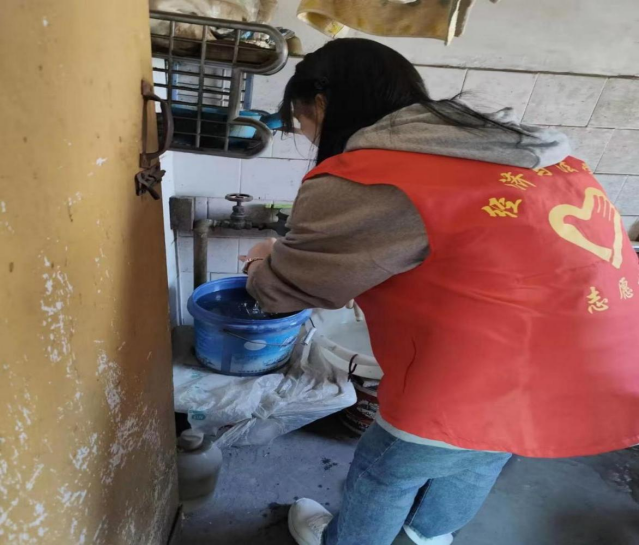首先,参与人员在社区工作人员和经法系团总支员工会主席兼志愿者服务队队长包东方的带领下,前往新风社区居委会,为社区当天生日的老人集体庆生并送上祝福。接着,志愿者们向社区的老人们开展法律知识宣传,提高老人的防范意识和法律意识。最后,志愿者们在社区工作人员的带领下对社区里的空巢、独居、留守老人进行入户走访调查和慰问帮扶。志愿者入户过程主动为老人扫地拖地、擦窗户、擦桌椅,整理房间,力所能及的让老人家里变得整洁干净。