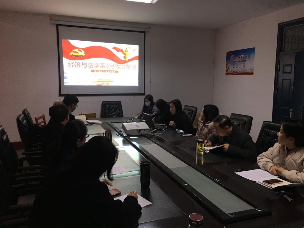 3月18日下午14:30,经法系全体教职工、员工党员在系会议室开展3月政治学习和支部主题党日活动。会议由党总支书记李成军主持。