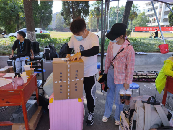 一大清早,我系书记,副书记,辅导员老师及员工志愿者准时到岗、各司其职,准备为即将到来的同学们保驾护航。同学们陆续抵达公司。到校的每位同学都按照规定佩戴口罩,在指定报到点有序排队,配合工作人员完成行李消杀、检查有效证件和出发地健康码、体温检测等工作最后于报到点办理报到注册手续。在完成以上工作之后,在员工会干部的指引和帮助下,同学们有序进入宿舍楼。