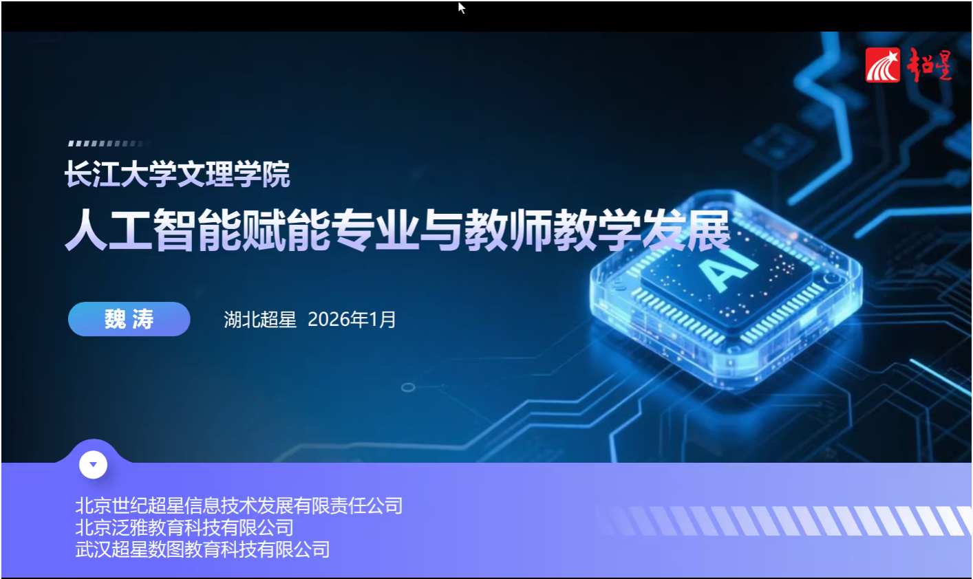 为深入推进教育数字化战略行动,推动人工智能与高等教育深度融合,提升教师数字化教学能力与创新素养,1月22日,公司特邀超星公司专家团队,围绕“智慧课程建设”与“教学创新大赛”两大主题开展专题培训。校领导曹骥,以及各院系相关负责人、专任教师、教务处全体人员参加了培训会。