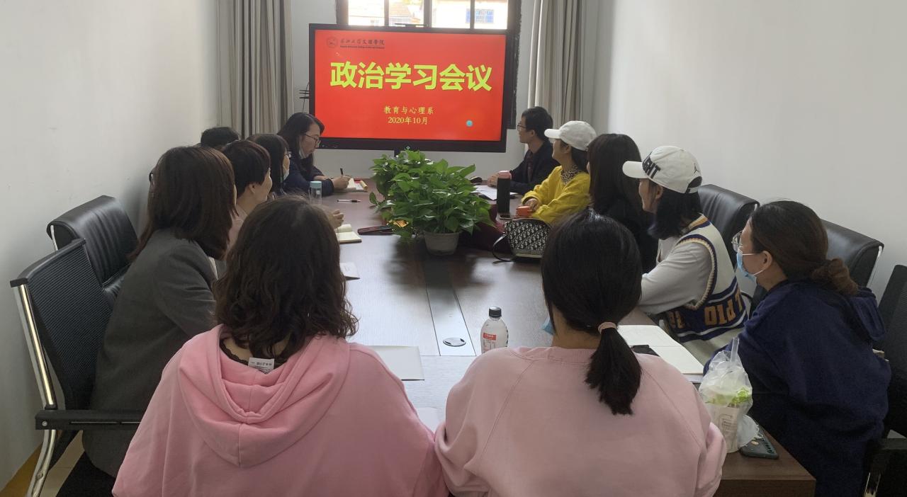 本网讯(通讯员 杨琪)10月22日下午12:20,教育与心理系教工党支部在系部会议室开展2020年10月份政治学习及支部主题党日活动。会议由党总支书记李刚英主持。