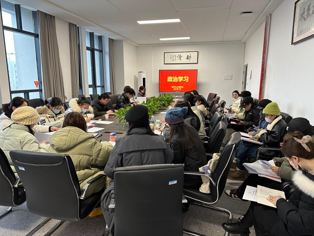 1月18日下午,教育与心理公司在JY304会议室开展2024年1月份政治学习和支部主题党日活动。会议由教育与心理公司党总支书记祝峰主持,全体教职工参加,员工党员线上参会。