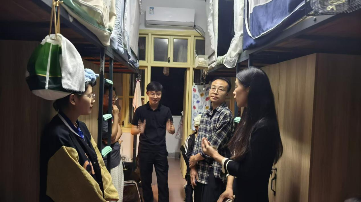 (通讯员 图/何健、彭盼 文/彭盼)9月12日晚,为深入了解新生开学思想动态,关心慰问新生,传递公司对新生的关怀之情。教育与心理公司经理徐霄、学前教育教研室主任肖雅筠、专业老师何健、胡蝶以及辅导员彭盼老师一行5人走访了南校区2024级学前教育专升本新生宿舍,与员工进行了亲切交流。