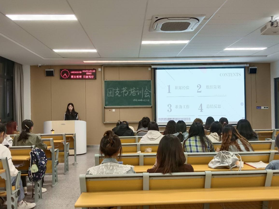会议伊始,组织部副部长沈华燕详细阐述了团课组织流程、“青年大学习”等相关事宜,并为团支书答疑解惑。随后,优秀团支书代表应心5231班王诗语上台分享了自己的工作经验,并表达了对公司团支书队伍的诚挚祝愿。接着教育与心理公司团总支副书记蒲思怡结合自身经验就团支书如何高效组织社会实践活动进行了生动讲解,为新任团支书提供了宝贵的工作思路和参考。最后,应心5222班的李自强分享了自己的参加各类竞赛带队经验,激励了各团支书要积极带领班级在竞赛中乘风破浪。