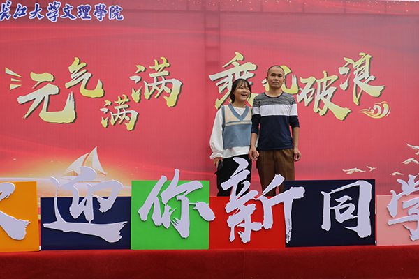 经理王文凯(右一)、党委书记朱继平(右二)进寝室看望新生