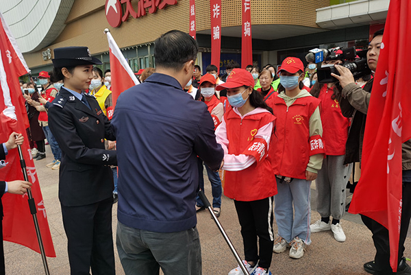 本网讯(通讯员 杨琪)4月23日上午,教育与心理系微光志愿者服务队参加在万达广场举行的“全民反诈 全民禁毒”主题宣传活动。荆州市委副书记、政法委书记吴朝安和相关领导参加。