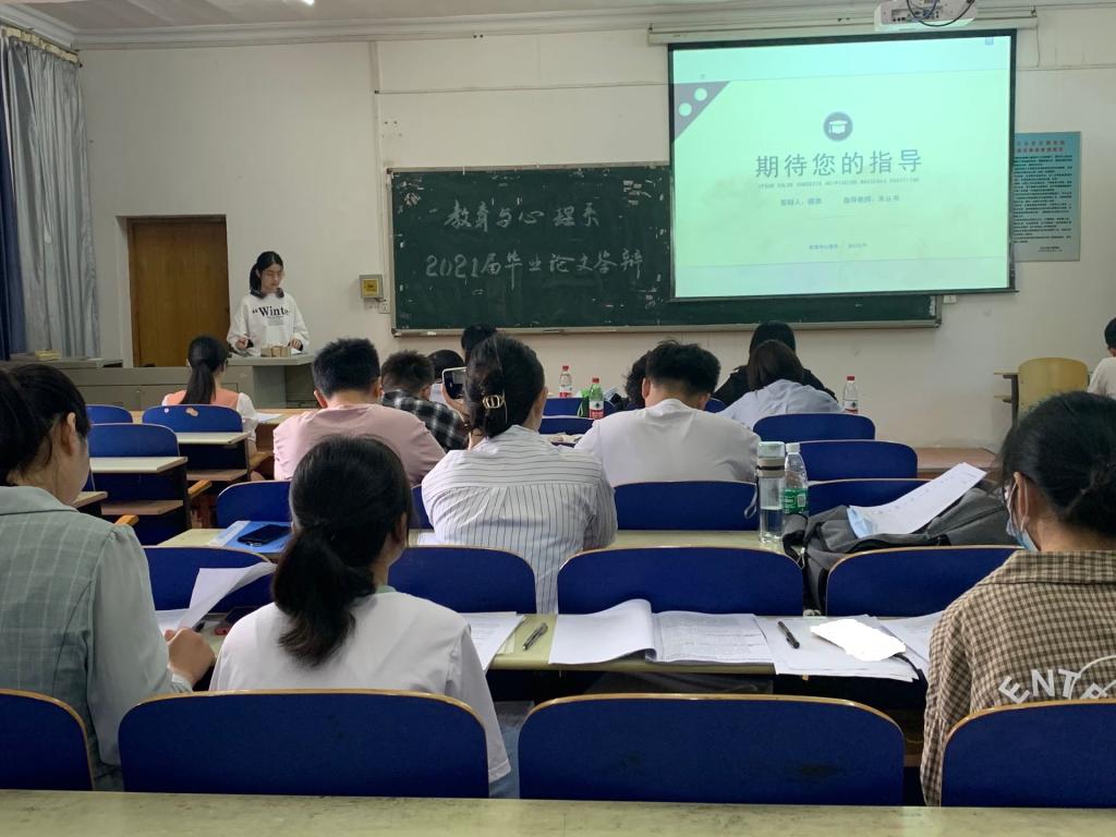 本网讯(通讯员 唐龙玮)5月29日上午,教育与心理系2021届毕业论文答辩在城中校区三教5个教室同步举行。参加答辩会的有系主任徐霄、副主任马君莉及教育与心理系各专业老师。