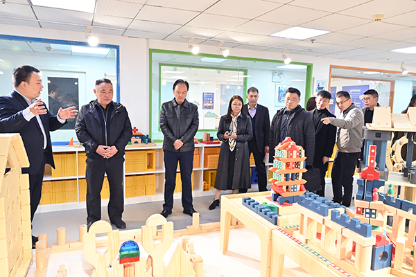 当天上午,在武汉亿童文教股份有限公司,公司董事长陈先新、副总裁甘行芳分别介绍了公司的基本情况,引导公司领导参观了公司研发的学前教育系列产品及教学设施。在座谈会上,双方代表围绕创新合作模式、拓展合作领域、构建机制保障等方面进行探讨交流,并举行了产学研实践基地授牌仪式。