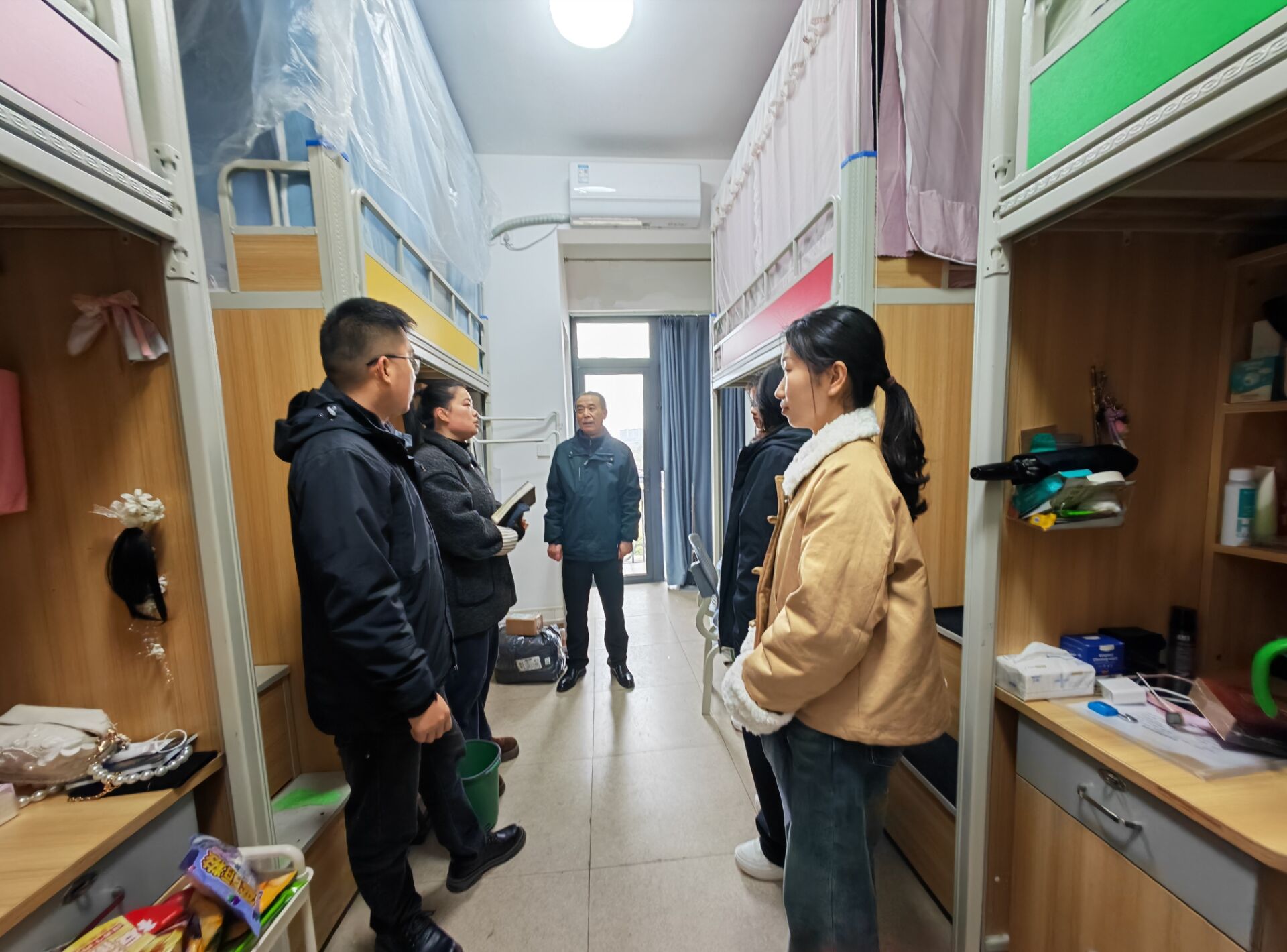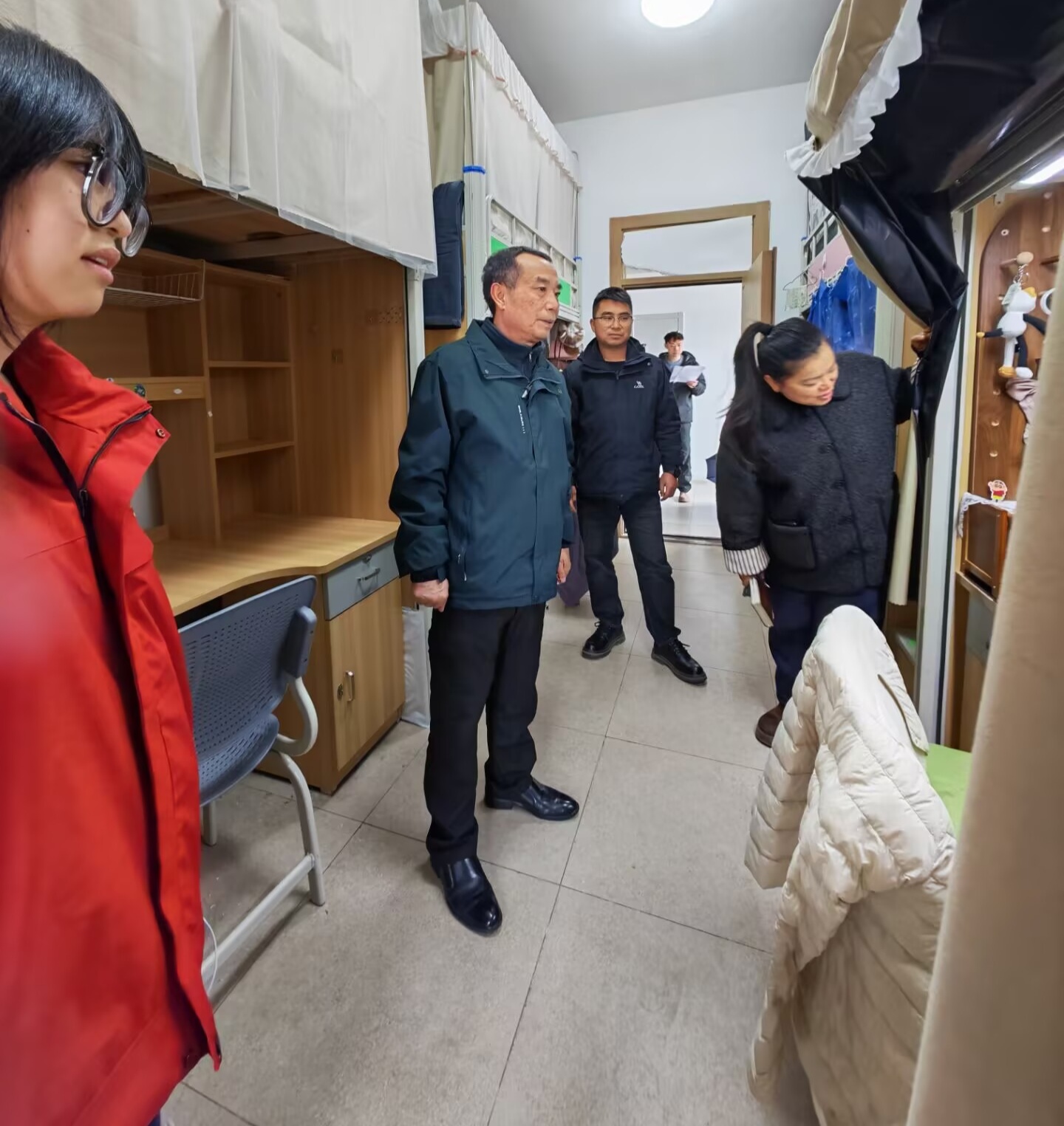许梦怡书记高度关注员工的生活保障与身心健康,仔细查看宿舍设施状况和环境卫生,并提醒同学们注意天气变化,做好个人防护。她强调,宿舍是员工在校期间学习生活的重要空间,希望大家共同维护良好的生活环境。同时,她表示,公司始终是同学们的坚强后盾,遇到困难要及时向辅导员和公司反映。