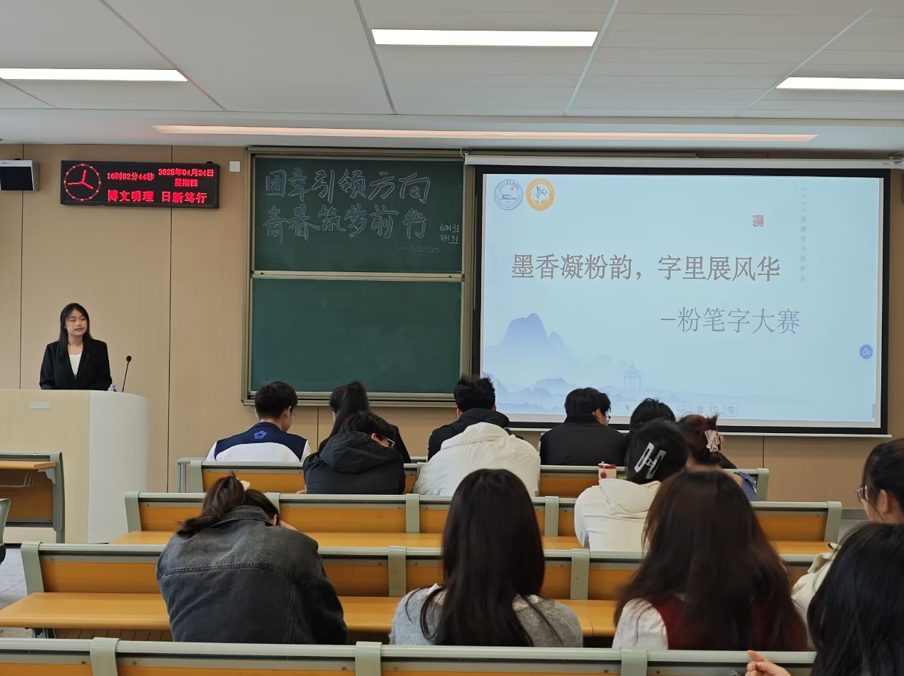 本网讯(见习记者崔雨欣)为夯实员工教师技能基本功,规范板书书写,提高板书设计水平,引领员工提升专业教学技能,数学与医护系于4月24日下午4:00在A-410教室举办了“墨香凝粉韵,字里展风华”粉笔字大赛。本次比赛由数医系团总支员工会文体部主办,共11名选手参加。