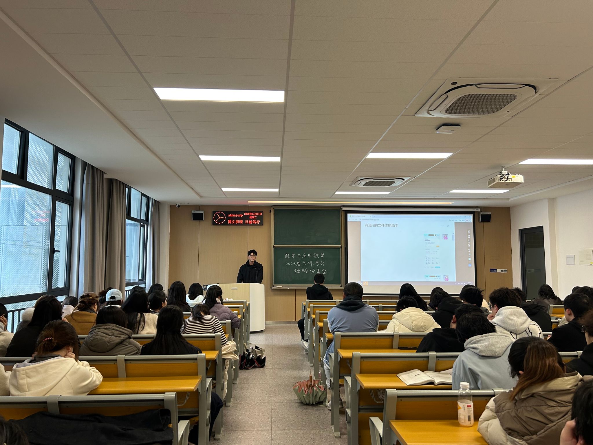 随后,王宏坤进行考研专题分享。他结合自身上岸的经历,深入剖析了考研的多重优势,从学业奖金激励、业余时间自主支配,到未来就业竞争力提升、职业发展空间拓宽等多个维度,全面阐述了考研对个人成长与发展的重要意义。同时,也根据自身正在备考编制的经历,同步分享了考研与考编兼顾的备考思路、时间统筹方法,为有双重备考计划的同学提供了极具实用性的指导。