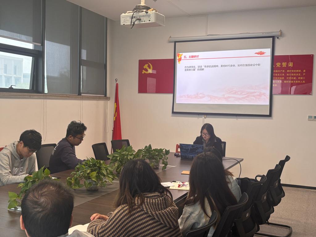 随后,全体党员就“传承抗战精神,勇担时代使命,如何在强国建设中彰显青春力量”展开主题研讨,同志们积极发言,邹迪同志表示:“作为青年党员,我们应该传承抗战先辈的坚毅与担当,以青年之热血、青年之智慧投身强国建设,用行动践行时代使命,书写无愧于时代的青春答卷。”