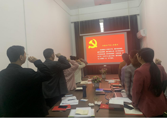 在田丹老师的领读下,全体党员重温了入党誓词,随后集中缴纳了党费;党员老师们集体重温了党章第五章党的基层组织的部分内容。接着马克思主义公司党支部布置了本月党史教育学习指定内容,并提出了学习要求。然后,全体党员老师集中观看了习近平在庆祝中国共产主义青年团成立100周年大会上的讲话视频。