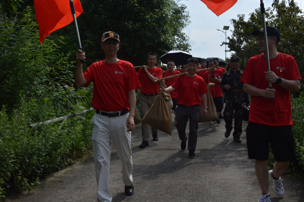 21日,全体人员整理衣装重走红军小路、重现红军练兵、重演雄师渡江,体验南泥湾大生产,不少教师现场学习踩水车、编草鞋、推石磨、摇风车、挑军粮、唱红歌……近距离缅怀革命先烈,感受战火纷飞的时代。