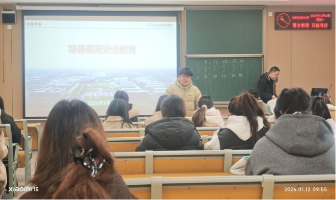 班会中,辅导员以及各班班主任围绕假期安全与成长规划展开细致讲解。班主任们结合实例强调了在人身安全方面,应注意交通安全、防电信网络诈骗及外出活动安全;在宿舍安全方面,则着重叮嘱大家离校前务必彻底关闭宿舍内所有电源、拔掉电器插头,妥善收纳贵重物品,杜绝火灾、失窃等安全事故的发生。此外,班主任们鼓励同学们合理规划假期时间,在休息放松之余,主动开展理论学习、思政相关证书备考等实践活动,践行社会主义核心价值观,以文明风尚欢度新春。