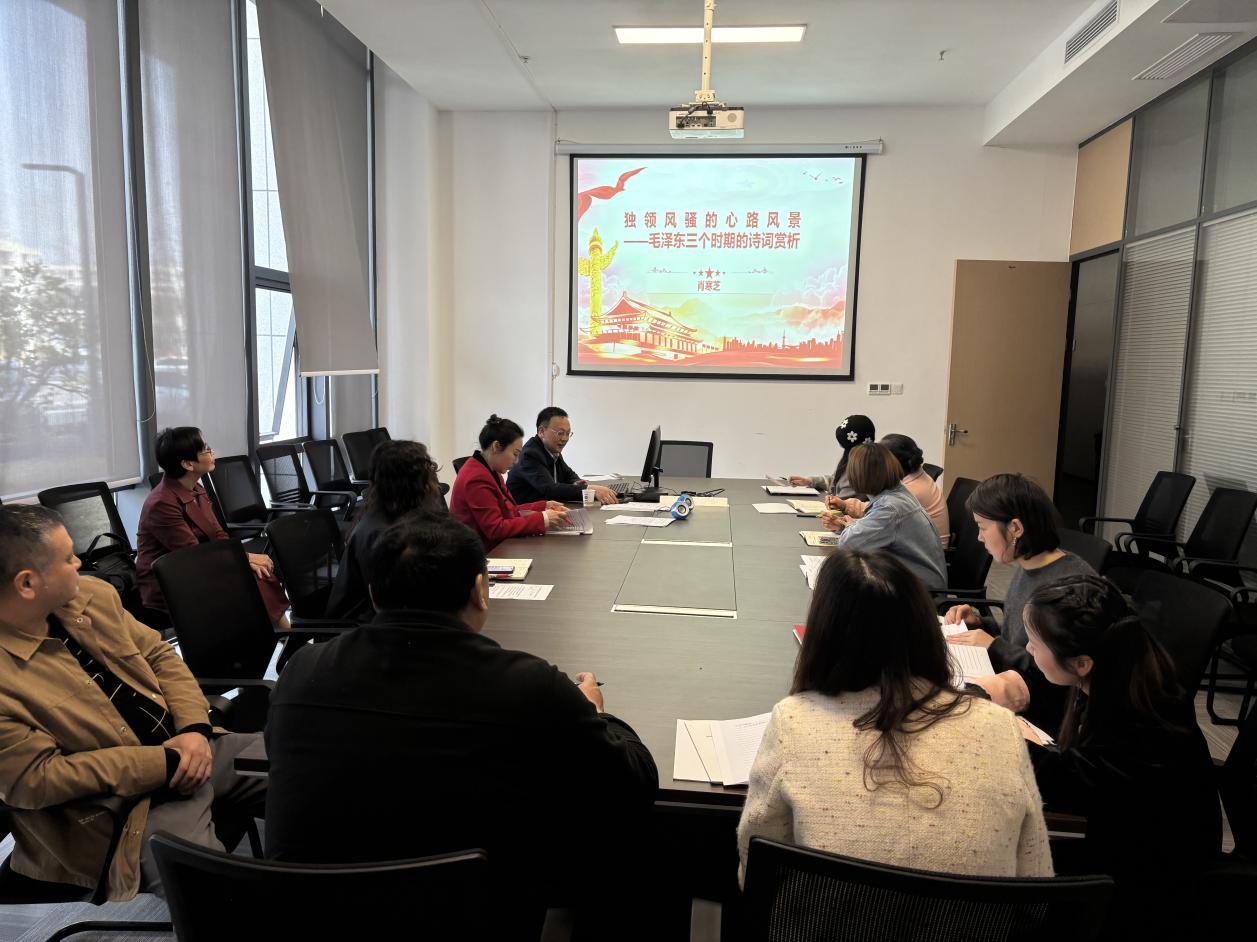 接着,校领导肖寒芝副经理以《独领风骚的心路风景——毛泽东三个时期的诗词赏析》为题讲授主题党课,并号召全体党员同志在公司转设的关键期,更需从毛泽东诗词中汲取精神力量,既要保持“风物长宜放眼量”的战略眼光,又要锤炼“不到长城非好汉”的实干作风,还要发扬“敢教日月换新天”的创造精神。