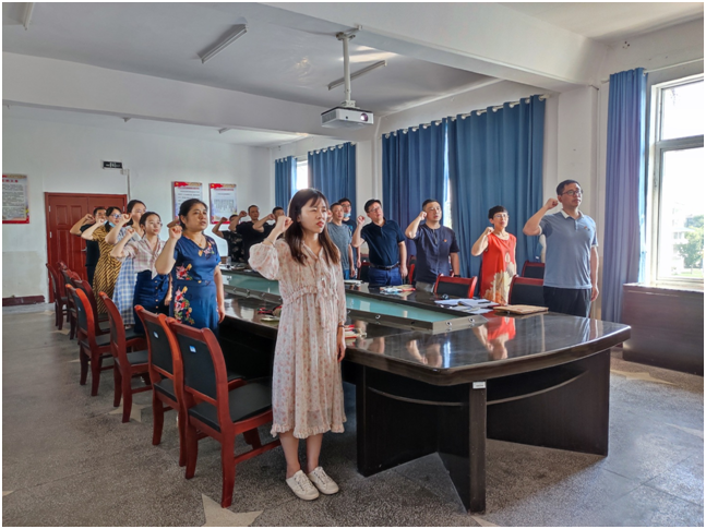 随后,党员老师开展9月支部主题党日活动。让华带领全体党员重温入党誓词,党员老师们一起学习《党章》第十、十一章相关内容,并学习《中国共产党简史》第四章夺取新民主主义苦命的全国性胜利,最后,学习了中共中央国务院印发《关于新时代加强和改进思想政治工作的意见》并展开了讨论。