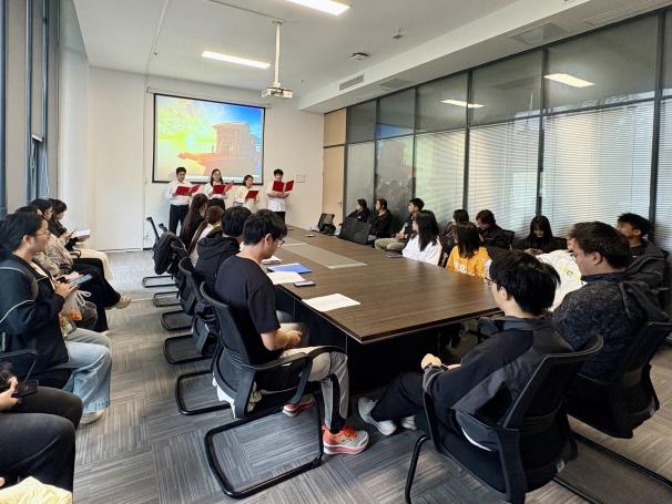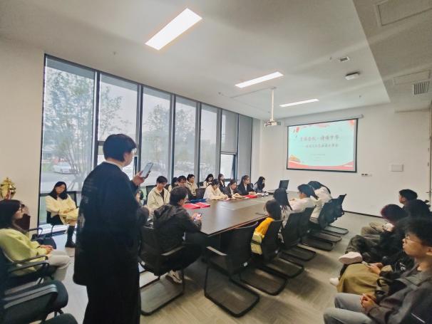 金秋送爽,丹桂飘香。为庆祝中华人民共和国成立76周年,弘扬爱国主义精神,丰富校园文化生活,9月23日中午,由图书馆主办、读者协会协办的“月满金秋・诗颂中华”迎国庆红色诵读分享会在图书馆104会议室顺利举行。师生代表齐聚一堂,以诗歌为纽带,用声音传递对祖国的深情与礼赞。活动由图书馆李梦婷老师主持。