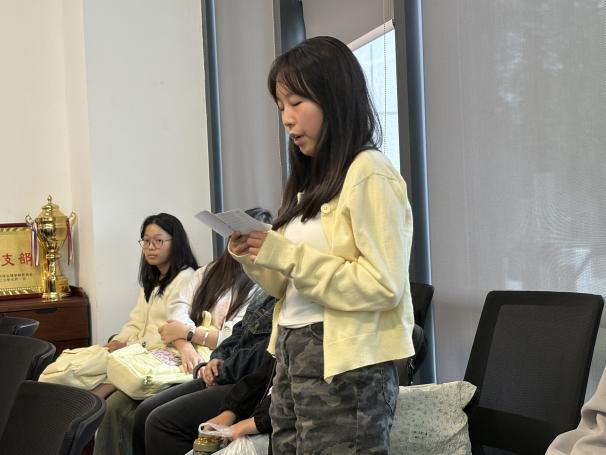 朗诵结束后,进入感言分享环节。同学们踊跃举手发言,认为分享会既是听觉享受,也是精神洗礼。从《火种与旗帜之歌》到《月光下的中国》,大家体会到了祖国从站起来、富起来到强起来的艰难历程,作为新时代青年,更应扛起责任,展现担当精神。