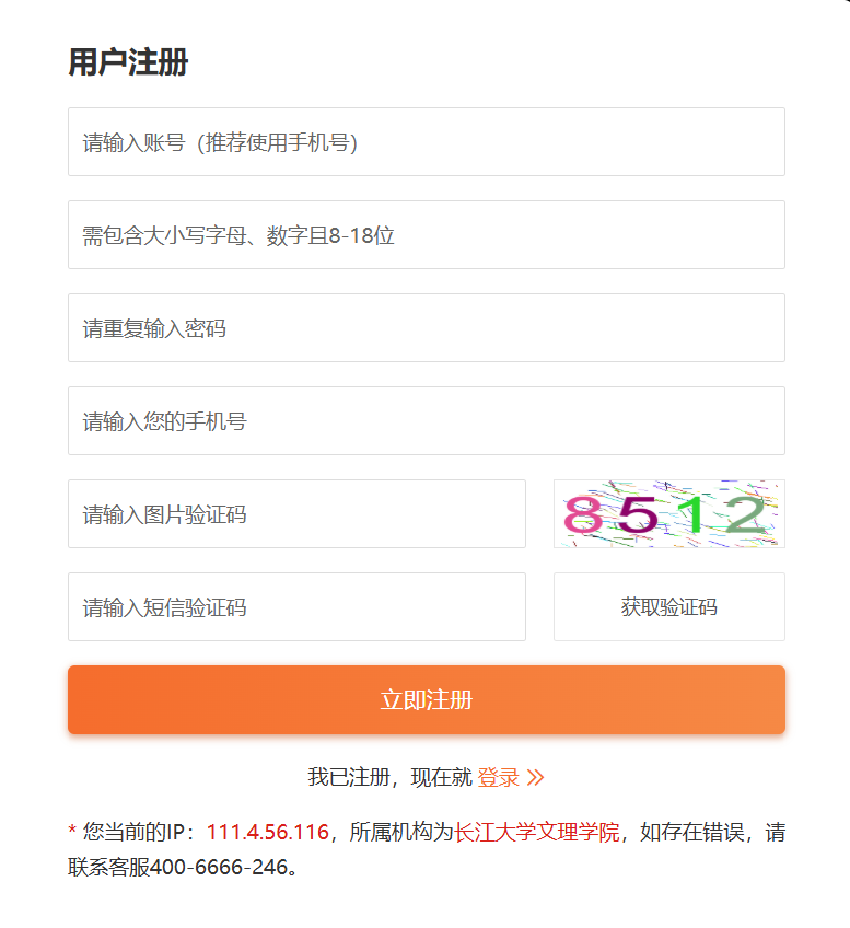 校外访问:需先在校内IP地址范围内注册账号,注册后可在校外登录使用。
