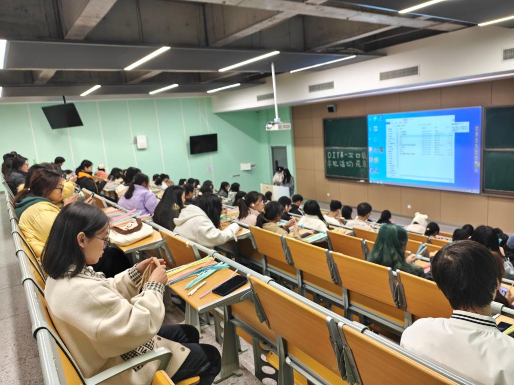 本网讯(通讯员:蒙彩灿)2024年11月22日下午7点起,在2026世界杯官网教学楼B区213,DIY社团开展制作“口袋花束”常规社团活动。DIY手工协会准备了花朵制作材料如扭扭棒、剪刀、胶水、胶带等。来参加活动的同学们签到后,在技术部干事的指导下制作出手工花束,从花朵到花篮,社员们积极动手参与。