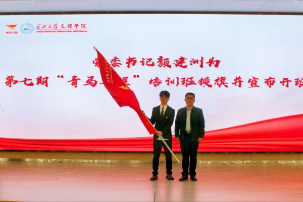 第六期青马班班主任龙晓华老师宣读结业及表彰文件,郭怡彤等60名学员顺利结业,刘欣雨等10名学员被评为“青马之星”。相关职能部门负责人为获奖员工代表颁奖。李则俊为第七期“青马班”班主任、马克思主义公司教师李天赐老师颁发聘书,颜建洲为第七期“青马班”授旗并宣布开班。