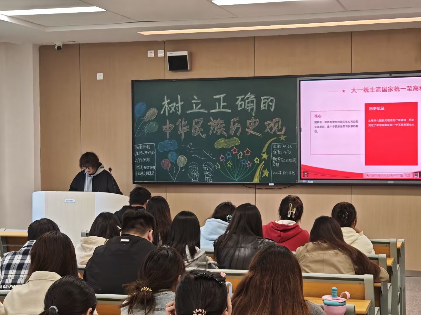 本次团课以党史、新中国史、改革开放史、社会主义发展史的壮阔历程为教材,将宏大的爱国主义叙事转化为鲜活的理想信念,帮助新生跳出对个人得失的短期纠结,将个人成长坐标置于民族复兴的历史经纬中,从而为四年学习生活树立崇高的精神旗帜,系好人生的“第一粒思想扣子”。