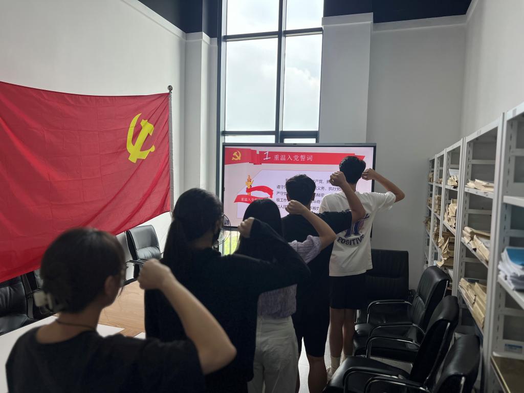 随后,开展了主题党日活动的六项议程:一是重温入党誓词,由体教S5231班的卢馨怡同志带领大家重温誓词;二是交纳本月党费;三是集体诵读党章;四是讲述相关党课,杜习申同志围绕着“深化党纪教育”进行讲解;五是开展理论学习——习近平总书记关于党的纪律建设的重要论述;六是作为一名党员,结合专题学习内容和纪律党课,开展集中研讨交流学习心得,以此主题开展主题研讨。