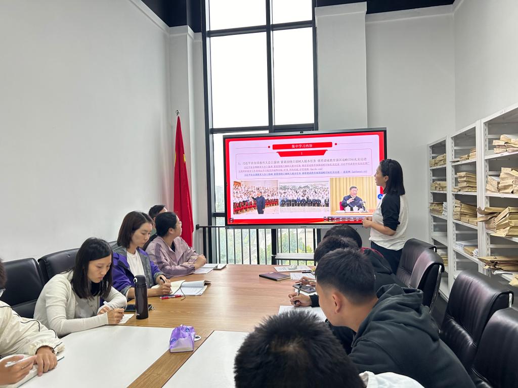 会上集中学习了习近平总书记在全国教育大会、庆祝中华人民共和国成立75周年招待会、中华人民共和国国家勋章和国家荣誉称号颁授仪式上等重要讲话精神。习总书记强调要紧紧围绕立德树人根本任务,朝着建成教育强国战略目标扎实迈进;强调推进中华民族共同体建设,巩固发展中华民族大团结。
